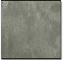 Además de las alteraciones ya descritas en la fibra muscular, se presentaron anormalidades en la microvasculatura que incluyeron algunas áreas de citoplasma endotelial electron transparente concomitantemente con otras de gran densidad electrónica. En áreas engrosadas del endotelio, la distribución de las estructuras celulares lució irregular (fig.7). En general, la membrana basal se presentó engrosada como puede notarse en esa y otras figuras(fig. 2 y 7). El infiltrado estuvo constituido por macrófagos (fig.7) y mastocitos o células cebadas. Figura 7 En esta micrografía electrónica: cuadrado: área electrontransparente del citoplasma endotelial, cabeza de flecha: área electrondensa del endotelio; rombo: prolongación morfológica; círculo: membrana basal engrosada. Nótese lo irregular de la distribución de las caveolas en el área electrontransparente del endotelio. Aumento: 24.000DISCUSION