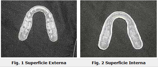 En éste estudio nos enfocaremos en la terapia con Férulas Blandas o Resilientes, la cual es construida con un Vacum o aparato de vacío a partir de una Lámina Termoformocurable de material Resiliente similar al utilizado para los protectores bucales de 3mm de espesor que suele adaptarse a los dientes ( Fig. 1 y 2 ). Al igual que las férulas acrílicas su objetivo terapéutico consiste en obtener un contacto uniforme y simultáneo con los dientes opuestos. 1