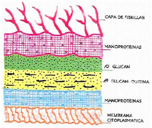 La membrana citoplasmática es una estructura que reviste gran importancia, ya que los antibióticos antimicóticos actúan a nivel de la misma, además de contener las enzimas responsables de la síntesis de la pared celular. Esta presenta una doble capa de lípidos y posee invaginaciones, que se observan como surcos de 200 a 300 nanómetros de longitud, por 35 a 40 nanómetros de espesor13,14. Además de los lípidos, la membrana citoplasmática está compuesta por grandes cantidades de proteínas y carbohidratos en menor proporción15.